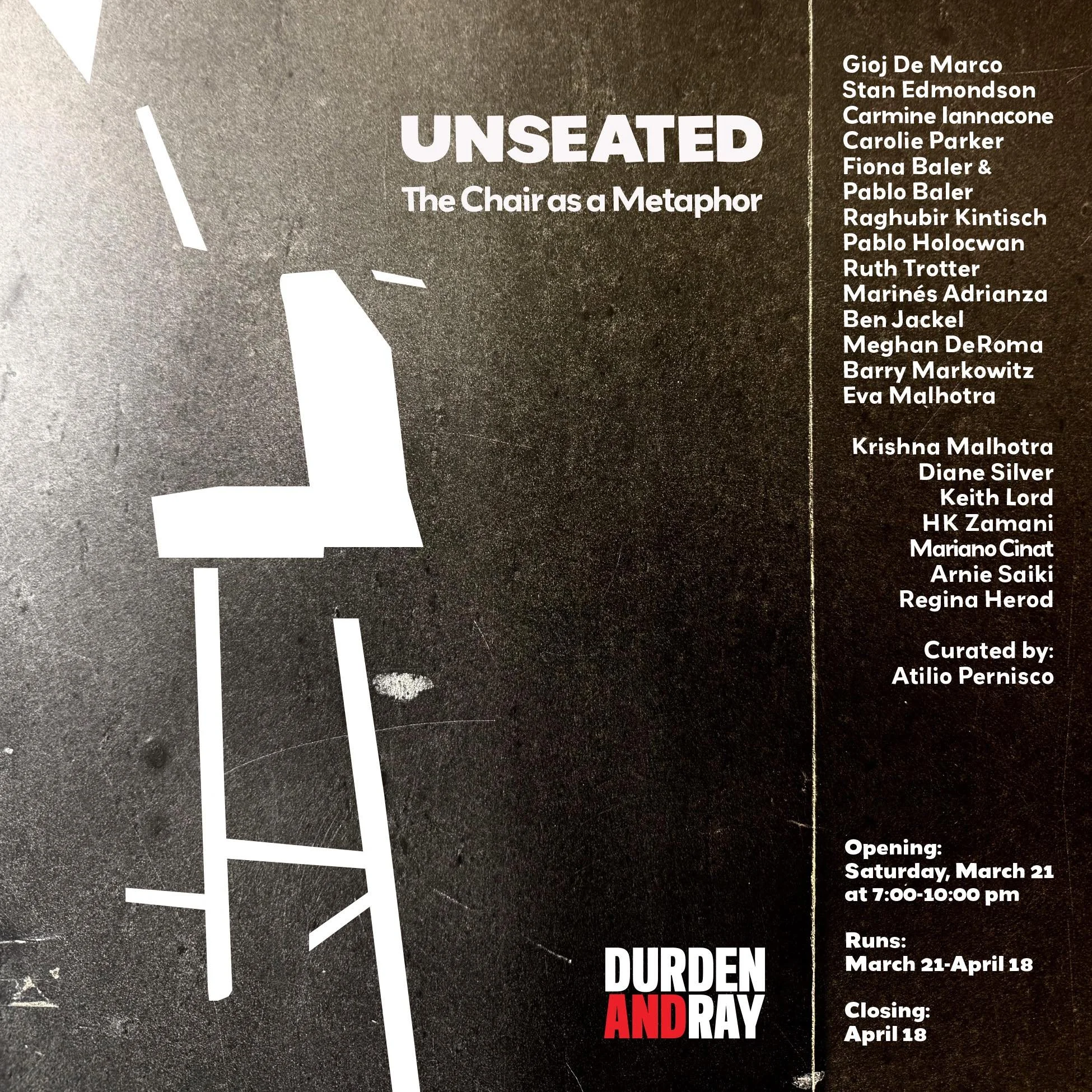 Durden and Ray presents UNSEATED: The Chair as a Metaphor which explores the web of symbols generated by one of our most familiar objects: the chair. This exhibit invites the visitor to engage with the chair not merely as a piece of furniture, but as a metaphor at the center of human experience. Inspired by works such as Joseph Kosuth's One and Three Chairs, this exhibition examines how language, representation, and embodied interactions converge to imbue this ubiquitous object with unexpected meanings.