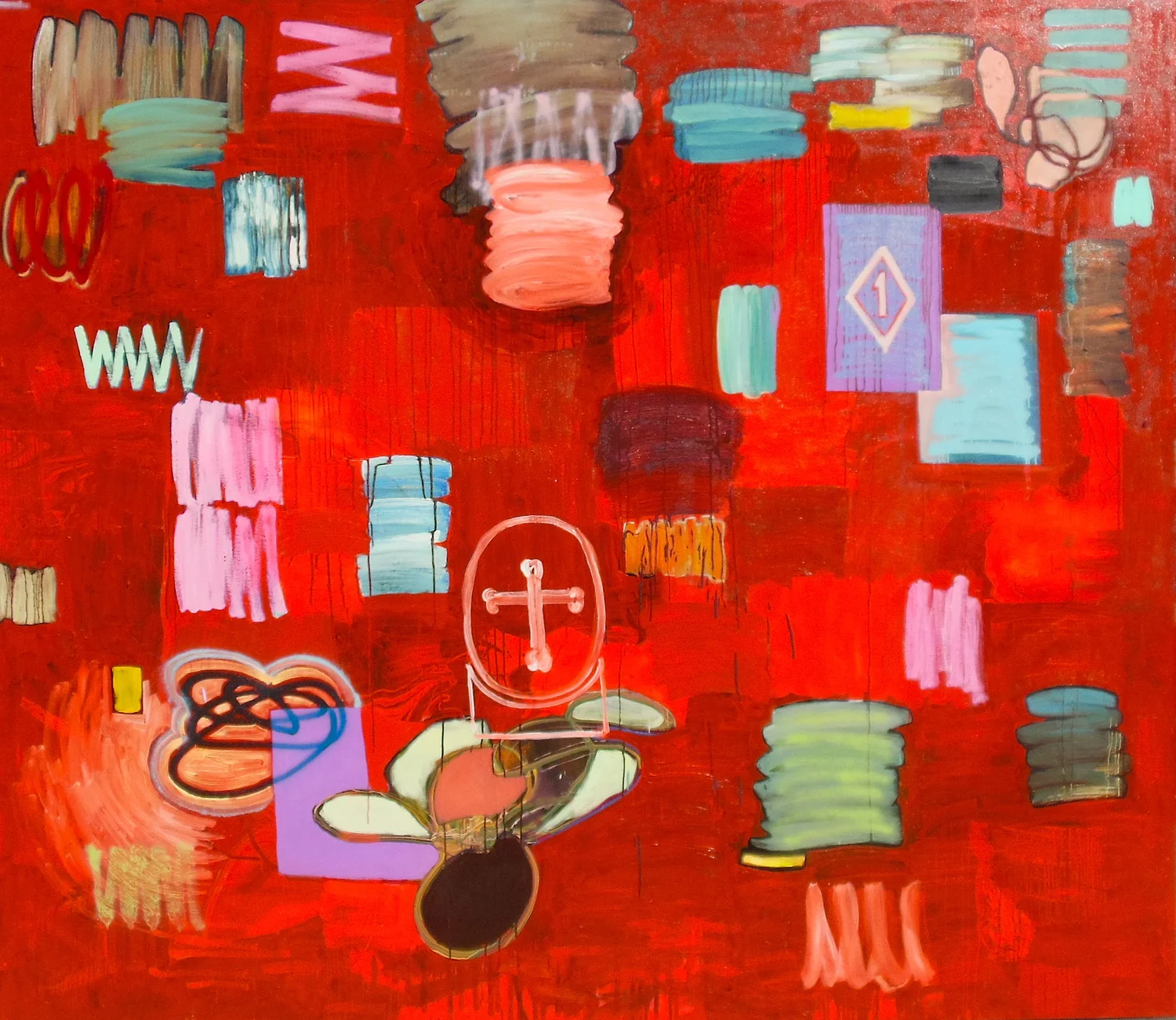 Parallax #12 (OUTLAW) 2022 oil, acrylic, spray paint, photo transfer on canvas over panel 72 x 72 inches
